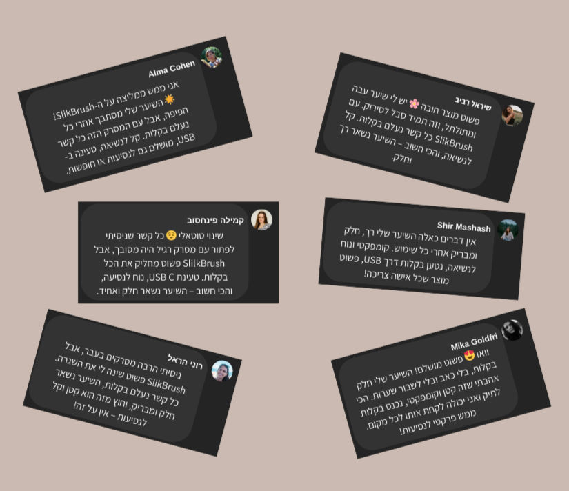 מהלקוחות מדווחות שהשיער נראה חלק ומסודר יותר כבר מהשימוש הראשון.