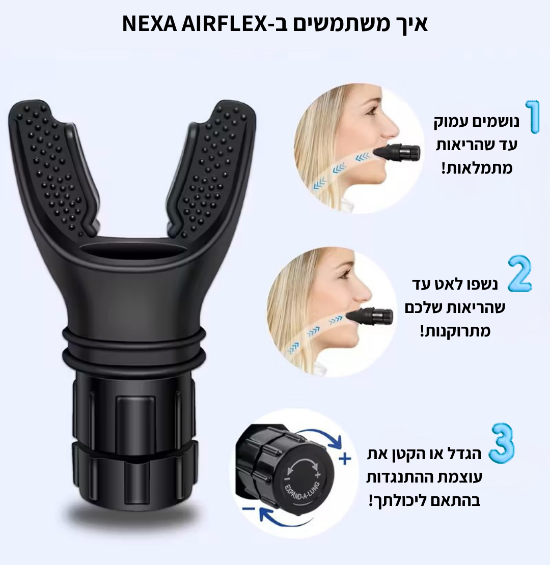 NEXA AIRFLEX נותן לך יתרון מטורף בכל אימון. בעזרת אימון התנגדות חכם, כל נשימה הופכת לאפקטיבית יותר — שרירי הנשימה מתחזקים, קיבולת הריאות גדלה, והסיבולת שלך מזנקת קדימה בצורה שמרגישים כבר מהימים הראשונים.